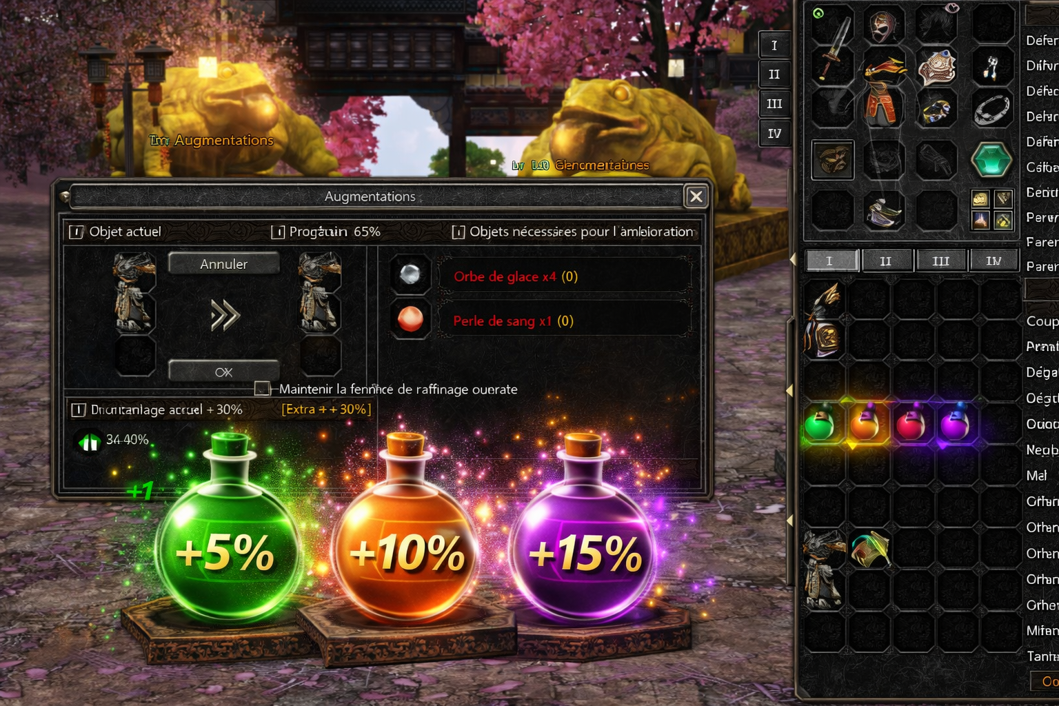 Obtenez sur les boss, et en instance des potions d'amélioration permettant d'augmenter les chances de réussite d'une amélioration d'un objet.